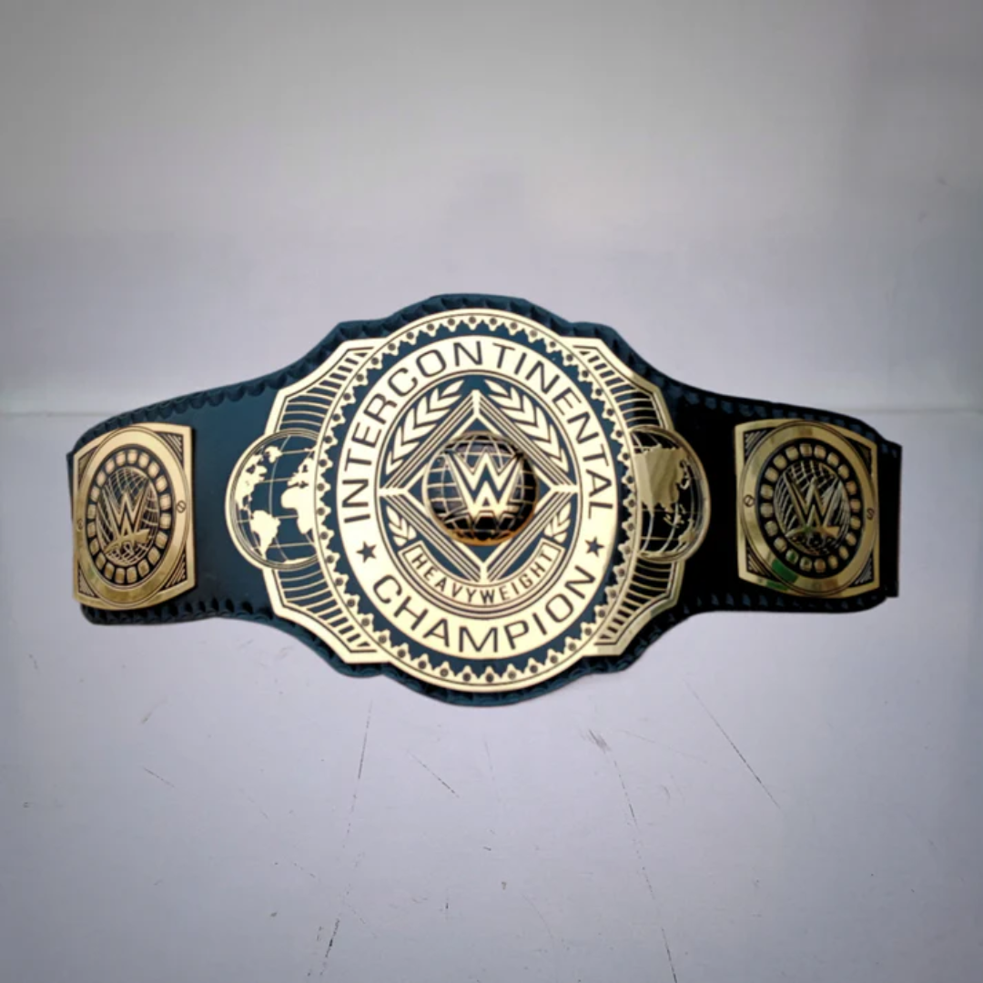 The WWE Intercontinental Championship Belt 2019 marked a new era of prestige for the Intercontinental Title. Introduced in 2019, this belt replaced the classic white-strapped version with a sleek black leather design, reflecting a modern, dominant look. Worn by top superstars like Shinsuke Nakamura, Sami Zayn, and Gunther, this championship belt is a symbol of elite competition in WWE.